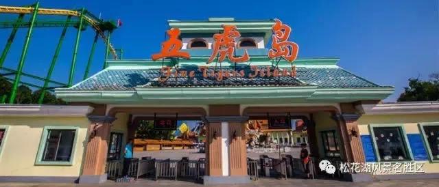 五虎岛是松花湖最著名的一座岛屿。建有连水桥,望湖台,别致的五虎亭廊,陆地、水上游乐世界,珍稀名贵动物观赏园、餐饮世界等,岛下沙滩连片,碧水涟漪,成为一个游泳、垂钓、泛舟、野餐、娱乐的理想之地。