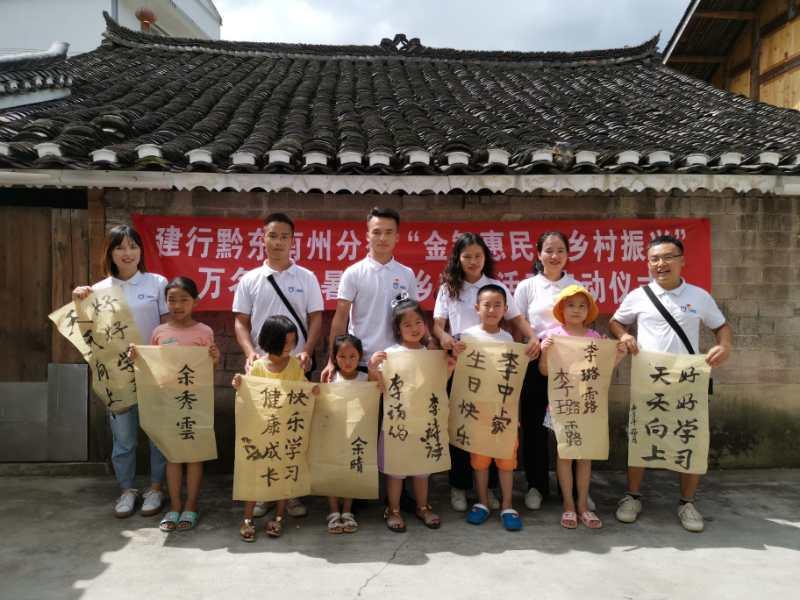 为贯彻落实党的十九大中提出的乡村振兴战略,扛起国有大行的责任和担当,中国建设银行黔东南州分行组织青年学子开展“金智惠民—乡村振兴”万名学子暑期下乡实践活动,将文化知识带进苗乡侗寨,为巩固脱贫成果、助力乡村振兴贡献力量。