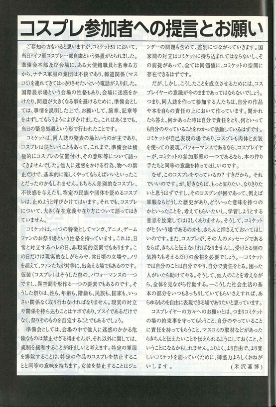 COMIKET对COSPLAY参加者的提议与请求。