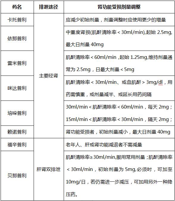 ACEI代谢途径的不同分为经肝与肾双途径和经肾单途径排泄,对于肾功能异常患者具有ACEI适应症时,应密切观察期肾功能的动态变化。