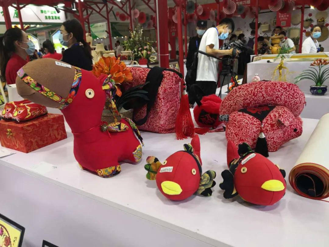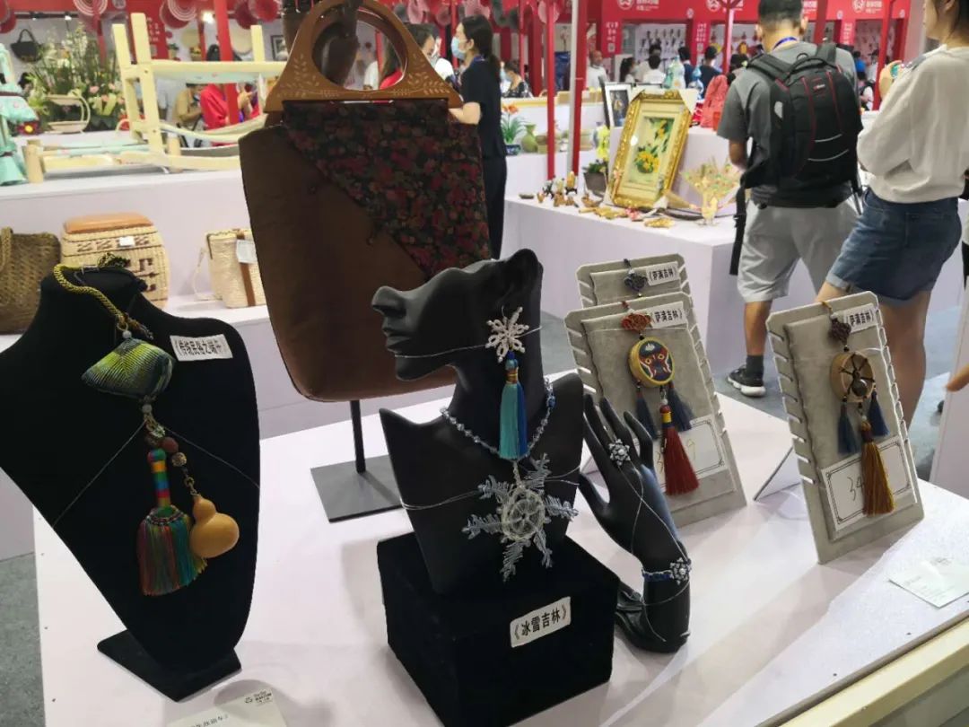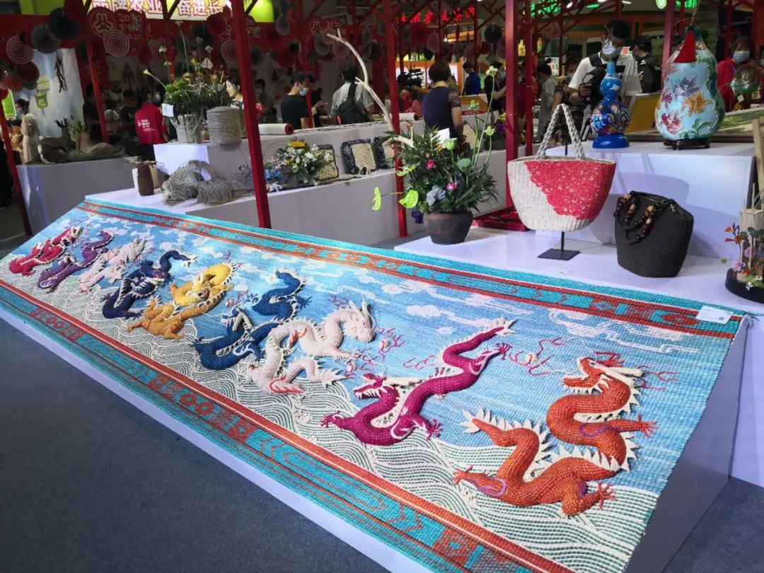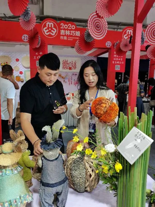 长春农博园2号馆内,草编九龙壁、草编人参、时尚背包、草鞋、玉米叶工艺画等100余件草编精品在现场展览,它们是来自于2020年吉林省暨长春市“吉林巧姐”大赛草编组的参赛作品。