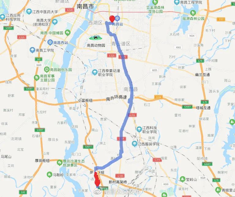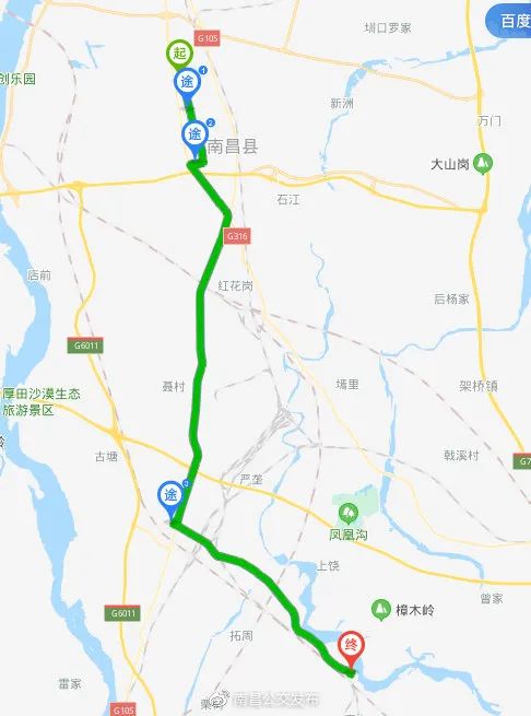 1、线路走向:昌南公交枢纽—莲西路—莲富路—迎宾大道—银三角立交桥—G105国道—广福—三江;