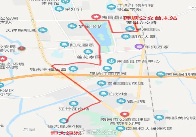 1、线路走向:莲塘公交首末站—莲塘中大道—澄湖中路—澄湖北大道—澄湖西路—莲富路—迎宾中大道—安宝大道—恒大绿洲;