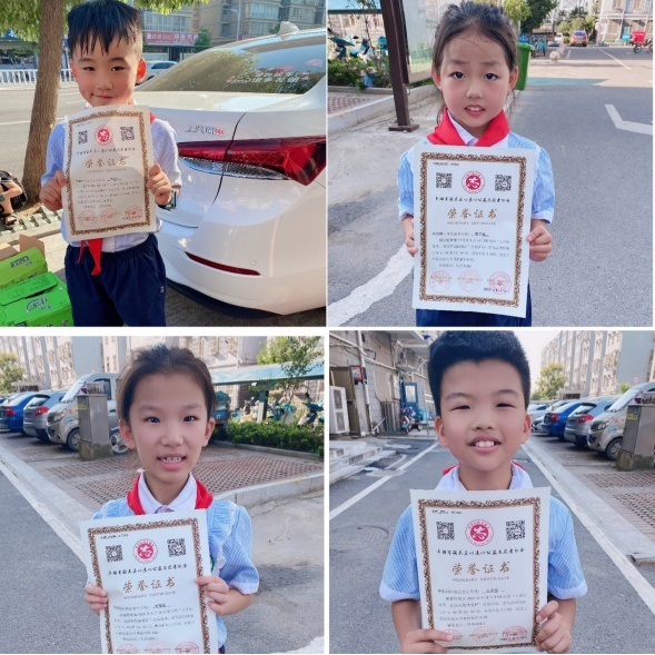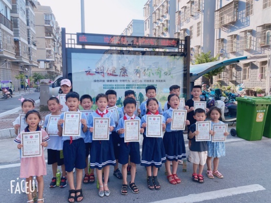 活动接近尾声时孩子们互相“比赛”,看谁垃圾捡得多。孩子们脸上洋溢着收获的喜悦!是啊,通过自己的劳动,让我们的小区变得更加整洁漂亮是多么令人自豪的事情啊!每位同学都领到“大手拉小手,社区环境我爱护”公益小天使证书。这是一张特殊的证书,是孩子们用汗水换来的,更是对孩子们文明行为的一种赞扬和鼓励。