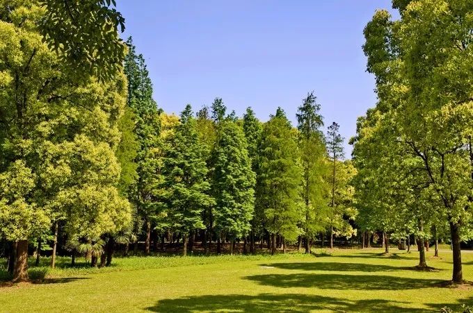 园内主要种植水杉,一条水杉大道在这个时节满目青翠,非常养眼。