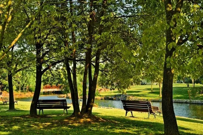如果不想走那么远,阿拉家门口也有很多绿意森然的避暑公园。