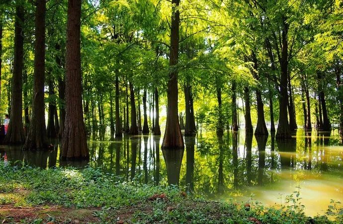 青西郊野公园是上海知名的以湿地为特色的公园,这里有沪上唯一的水上森林水杉林,宛如秘境。