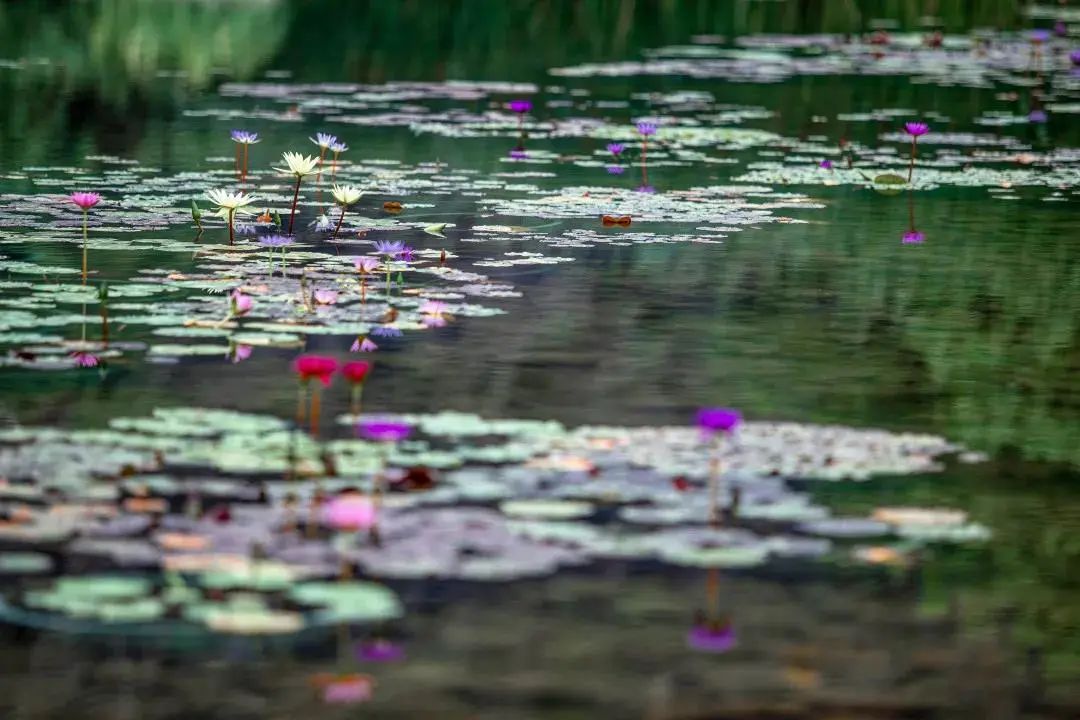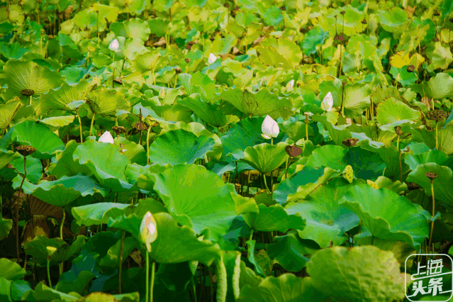 水池里面,神似莫奈名画的睡莲、西双版纳同款王莲、单瓣孙文莲……各种各样的莲花竞相盛放,让人立马就感受到了夏日的美好。