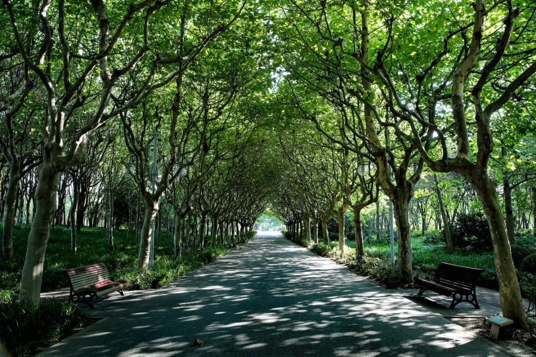 世纪公园除了大草坪、镜天湖,大多区域的道路都是绿树成荫,下班之后或周末,随时都能来吸氧散心。