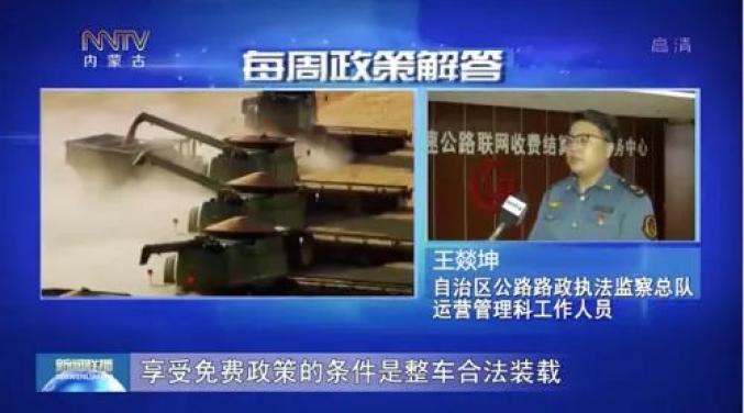 自治区公路路政执法监察总队运营管理科工作人员王燚坤:“不是所有的车辆都可以免费,免费政策主要针对的对象就是鲜活农产品,及联合收割机、包括插秧机的运输车辆。享受免费政策的条件是整车合法装载,其中整车是指所在鲜活农产品,应占车辆核定载质量或者车厢容积的80%以上,且没有与非鲜活农产品混装等行为。合法是指车货总重和外廓尺寸,均未超过国家规定的最大限值。”