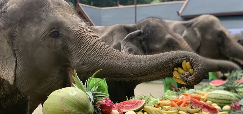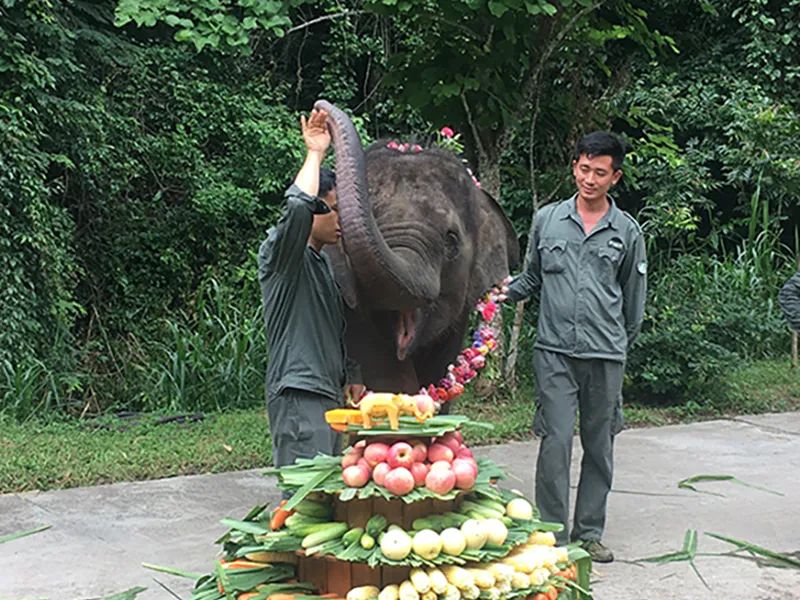 2020年8月12日,第九个世界大象日这一天,亚洲象宝宝“羊妞”在云南省西双版纳傣族自治州野象谷景区迎来了五周岁的生日宴。