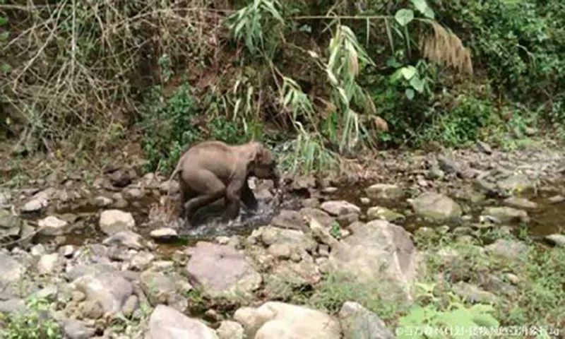 2015年5月10日,景洪市勐养镇跳坝河村小组护林员在该村附近发现一头幼象独自徘徊在自然保护区边缘的小河边。