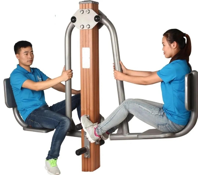 坐蹬器是最常被当做座椅的健身器材之一,路过的人走累了总喜欢坐下来休息一会。