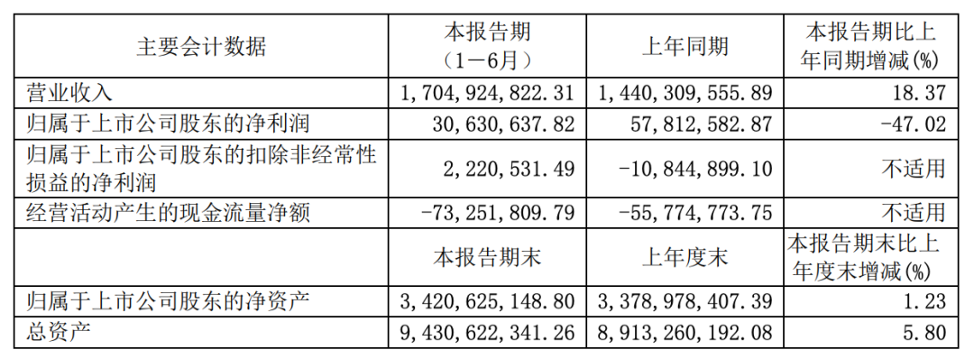三费方面,财务费用同比增长23.73%至7517.80万元,超过营收增速,半年报称主要系上半年营业收入的增长导致融资规模扩大,利息支出增加所致。另外,管理费用同比增加1.85%至1.11亿元,销售费用同比下降8.83%至4271.44万元。