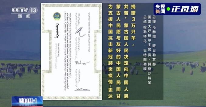 新冠肺炎疫情发生后,蒙古国表示将向中国捐赠3万只羊。目前,捐赠工作进展如何?捐赠背后还有哪些暖心的故事?17日晚,中国驻蒙古国大使柴文睿作客《新闻1+1》节目,介绍了相关情况。