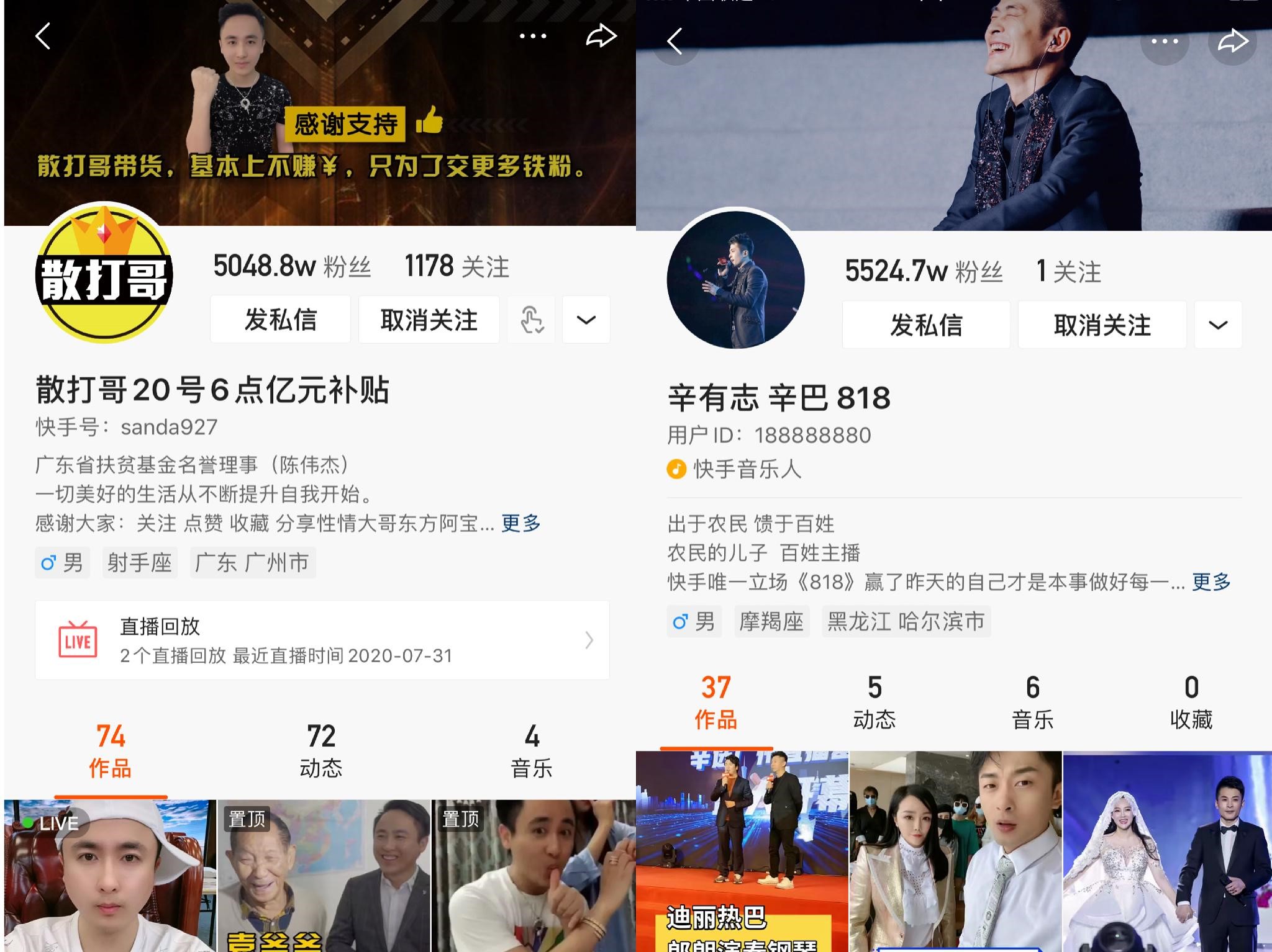 在开业典礼的发言中,辛巴提到,自己做直播只有2年时间。追溯到“刚入行”的2018年8月,当时的快手一哥是散打哥。两人的快手粉丝目前均已超过5000万,但辛巴后来居上,在6月复出之后反超散打哥,比散打哥多了近500万。