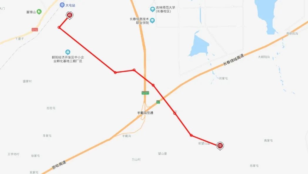 线路情况:该线路为净月区通村屯的特色公交线路,为解决玉潭镇胜利村、东升村出行需求设置,由长客集团经营,线路调整至净月大街、森杨路,在森杨路设置净月大街站、罗圈背站、刘家沟站、利民村站、后西小河子屯站。线路全长29公里,首班末车时间6:00-17:00,定时发车,单车日运营4个班次。