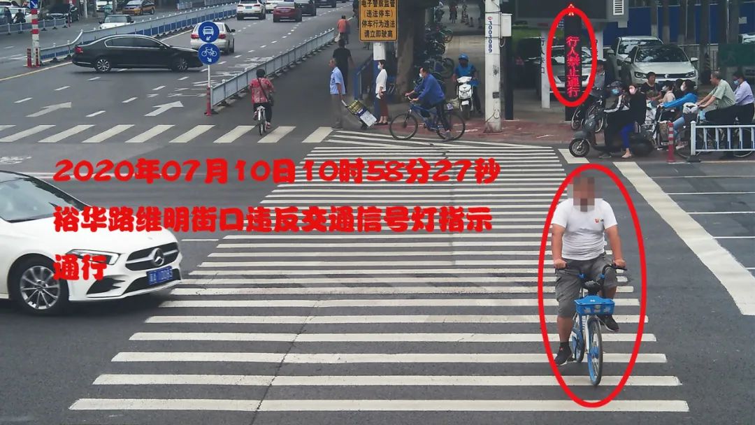 这五个闯红灯的违法人,请抓紧到辖区交警大队接受处罚