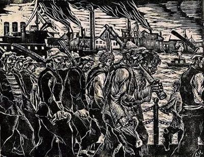 他们画黄浦江边疲惫的装卸工人: