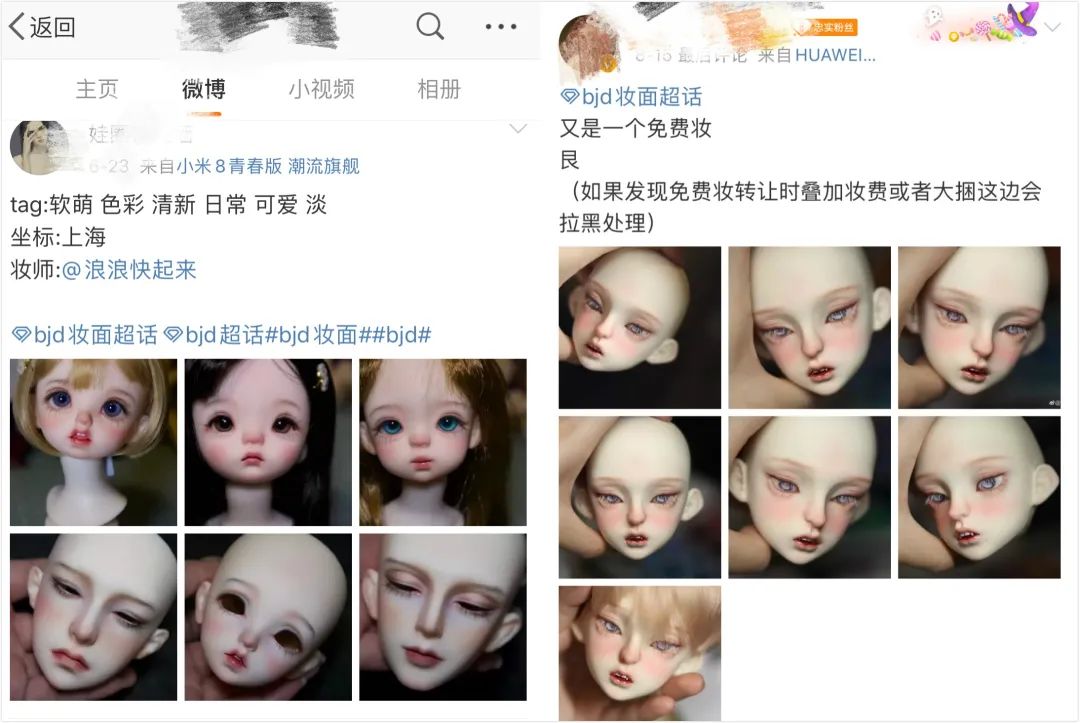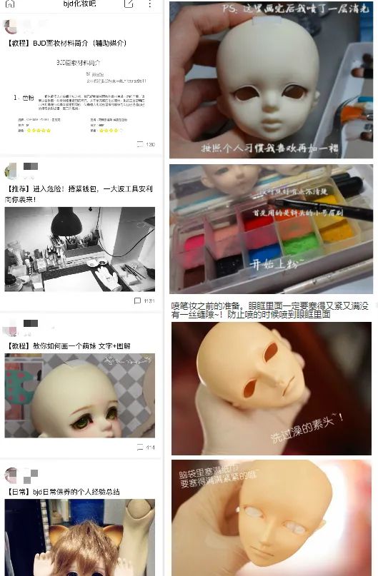 据比耶目前的观察而言,贴吧、咸鱼、微博等等社交平台上的兴趣组里都有“壮士”们发布的“接妆”信息,以及“娃圈”玩家发布的娃娃妆容需求的信息。大家可以多搜索,多关注!
