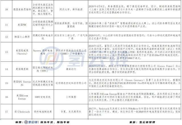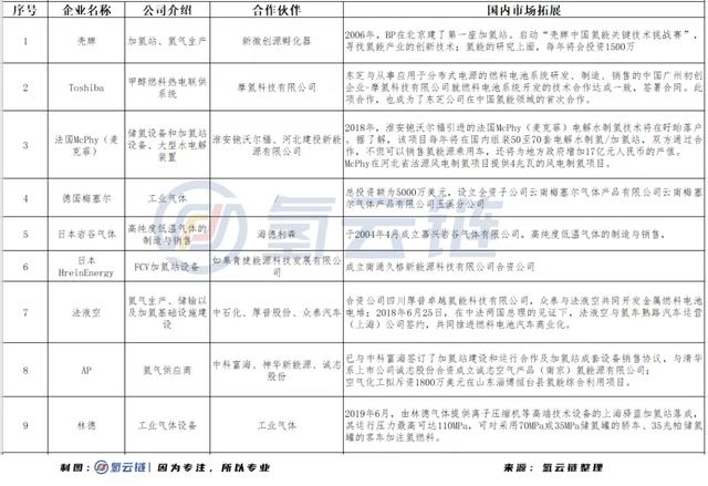 庞大的中国市场吸引了大量的氢能与燃料电池企业。