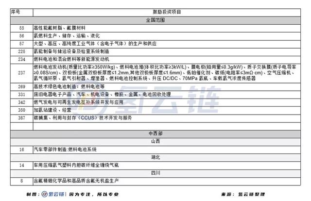 在《鼓励外商投资产业目录(2019年版)》中,与氢能源方面相关的内容如表1。从产业链上游的氢气制储运,到中游的加氢站、燃料电池系统,下游的新能源汽车,氢能与燃料电池全产业链都纳入了鼓励外商投资的范围——与汽车产业遮遮掩掩不同,国家直接开放了整个氢能产业链条。