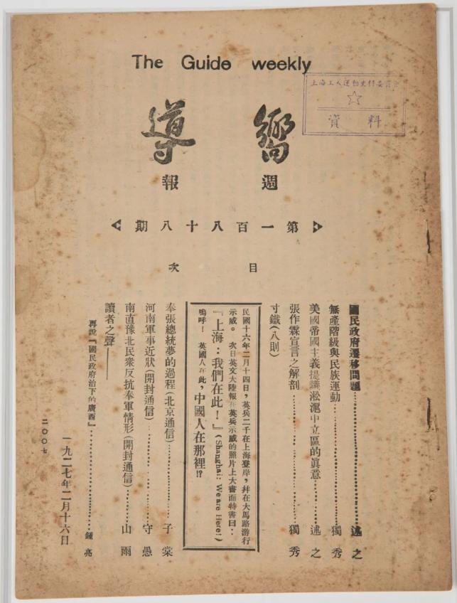 中共中央创办的第一个政治机关刊物。1922年9月13日创刊于上海。周报。亚东图书馆印行,发行量最高曾达3万份。1927年7月18日出至第201期停刊。蔡和森、彭述之、瞿秋白先后主编。该刊以指导国民革命运动为宗旨,旗帜鲜明地阐述了党的反帝反封建的民主革命纲领,发挥了舆论宣传和政策指导的作用。