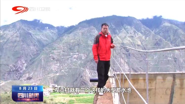 记者 邓绍希:左贡村就有三个这样的大型蓄水池,通过光伏太阳能设施,将定曲河谷底的河水提到海拔2800米的高山上,打开蓄水池的这个阀门,水就通过这个管道输送到山下的村里面。