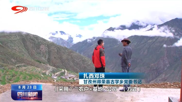 甘孜州得荣县古学乡党委书记扎西邓珠说:“(采用)农户+基地+公司(方式),整个这个贫困村后续还是有保障,年年都有增收。”