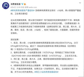 ⑬ 2020-08-03消费者报道《8款鲜炖燕窝测试:3款大牌涉嫌虚假宣传》