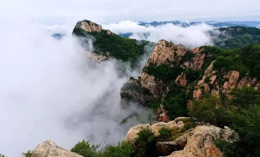 因景区五座山峰齐肩耸立得名五岳寨