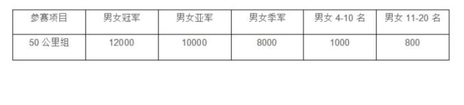所有完赛选手将获得完赛奖牌和电子证书,前20名颁发奖金。