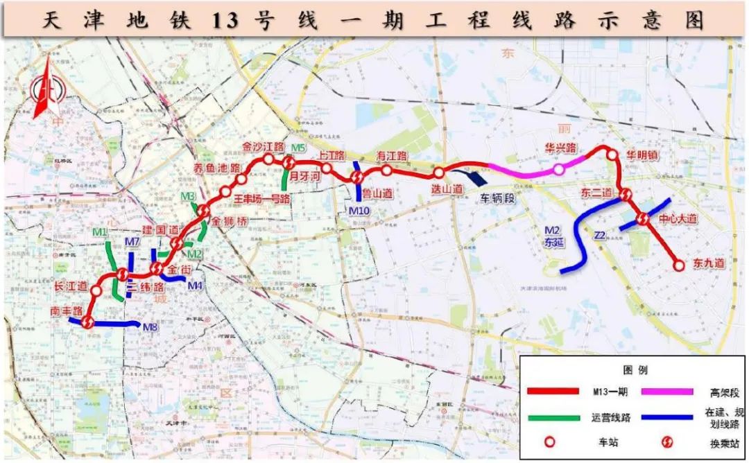 场段:建成后与地铁8号线一期贯通运营,利用其海河教育园车辆段进行收发车、检修。