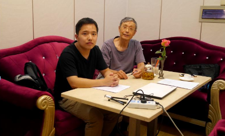 图为2020年8月9日上海大学历史系硕士研究生张程程(左)采访倪同正