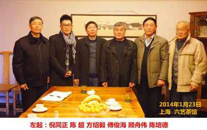 图为陈超博士(左2)在上海的一次采访活动的集体合影