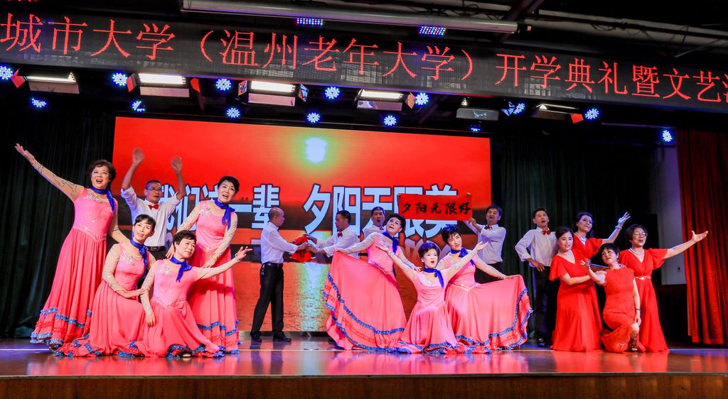 在温州,越来越多的老年人在老年大学和老年学堂中找到了精彩生活。近年来,温州老年大学总校——温州城市大学,报名人数每年以500人次递增,仅靠老年大学远远无法解决老年人的“就学难题”。为此,温州出台《温州市中长期教育改革和发展规划纲要(2011-2020年)》,明确提出“依托社区大学,创办老年学院”,把老年教育办到社区,办到家门口,形成“就近、便捷、快乐、健康”的老年教育特色。