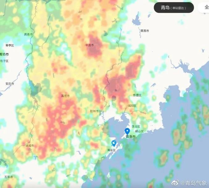 暴雨区集中在城阳、即墨、胶州部分地区,