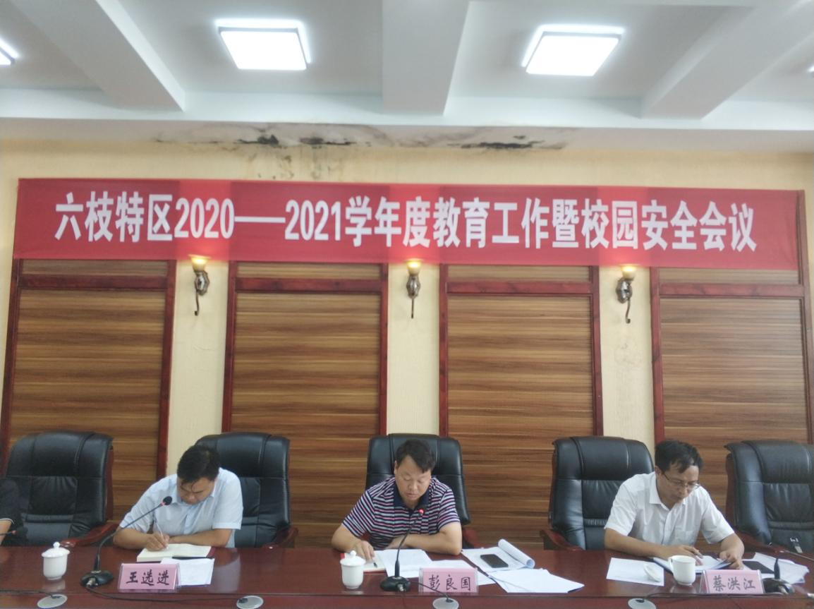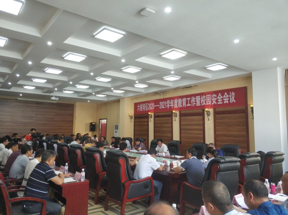 贵州民族报讯(特约记者 尚 任)8月22日,六枝特区召开2020—2021学年度教育工作暨校园安全会议,教育局主要领导和分管领导、部分股室负责人,各乡(镇、街道)分管教育负责人,各中心校、区直各校(园)校(园)长110余人参加会议。六枝特区人民政府副区长彭良国同志主持会议并讲话。