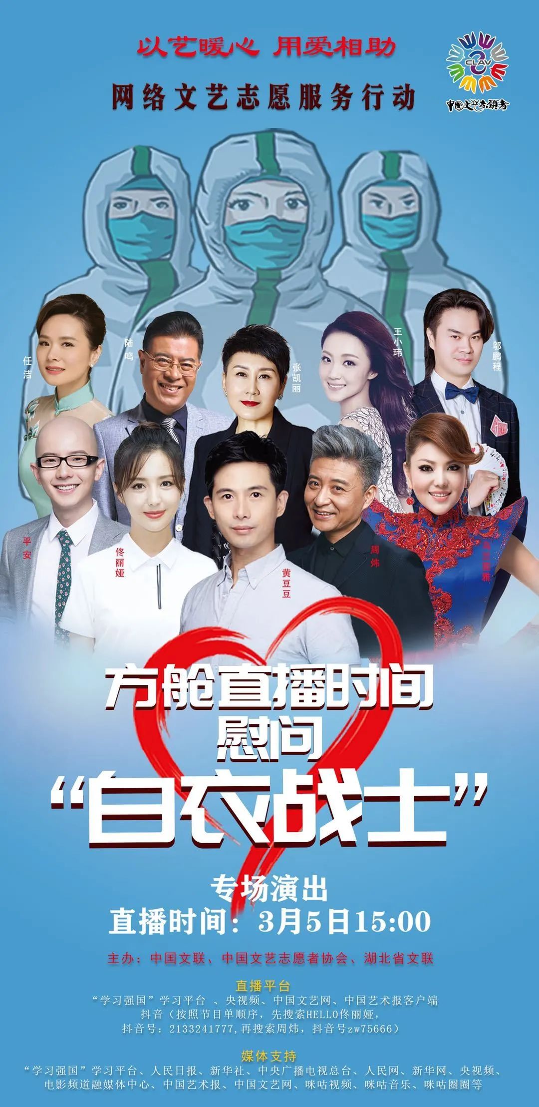 黄豆豆:今年虽然因为疫情的影响,演出暂缓了一段时间,但是我们也通过互联网开展了很多文艺方面的志愿服务工作。大年初一一大早,我一边擦窗一边想到,大家都在“声援”武汉,何不用“歌声”表达心声呢?于是我将自己的想法发在了“新艺联”的群里,希望大家群策群力,没想到,很快得到了多位新文艺工作者的支持。仅用了三天多的时间,我们就 “云合唱”了《同胞兄弟》,录制了视频。