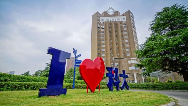 中国科大的校门,犹如一块方方正正的砖石,中间镂空成大门,顶上“中国科学技术大学”字样,门前两座石狮,十分严肃。校门风格和它严谨的科研气息如出一辙。每年4月春来,中国科大的樱花都会如约而至,成为合肥的网红打卡地。严谨“高冷”的中国科大一时间换上了粉红颜色,变得亲切可人,为合肥老百姓带来春日好景。