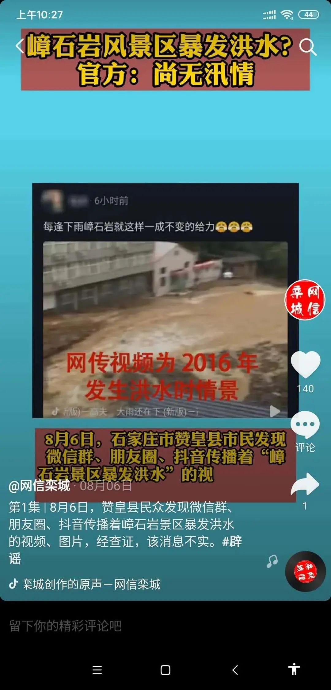 凝聚平台宣传合力。在充分利用现有的“网信栾城”微信、微博、头条、抖音等移动新媒体传播平台基础上,区委网信办新增开设了“栾城区网络举报辟谣平台”今日头条号,以图文、动漫、微视频等直观有趣的新媒体形式,将各类辟谣信息快速准确地传递给更多的网民,其中“网信栾城”抖音号上开设的“辟谣”专栏播放量已超3万。