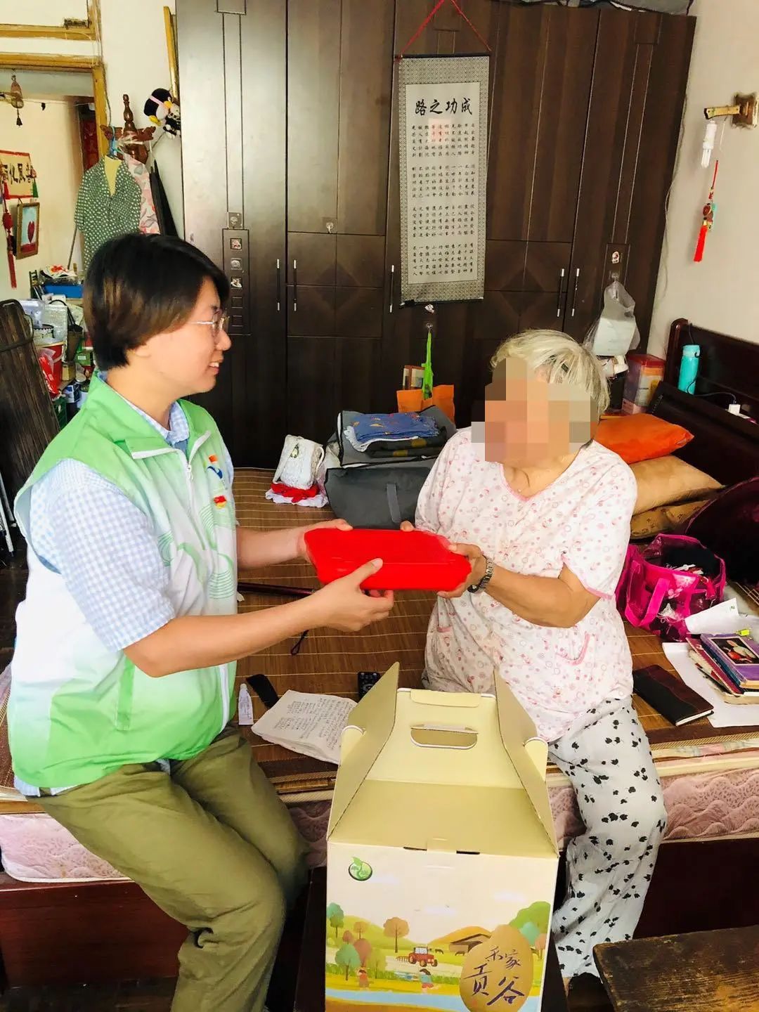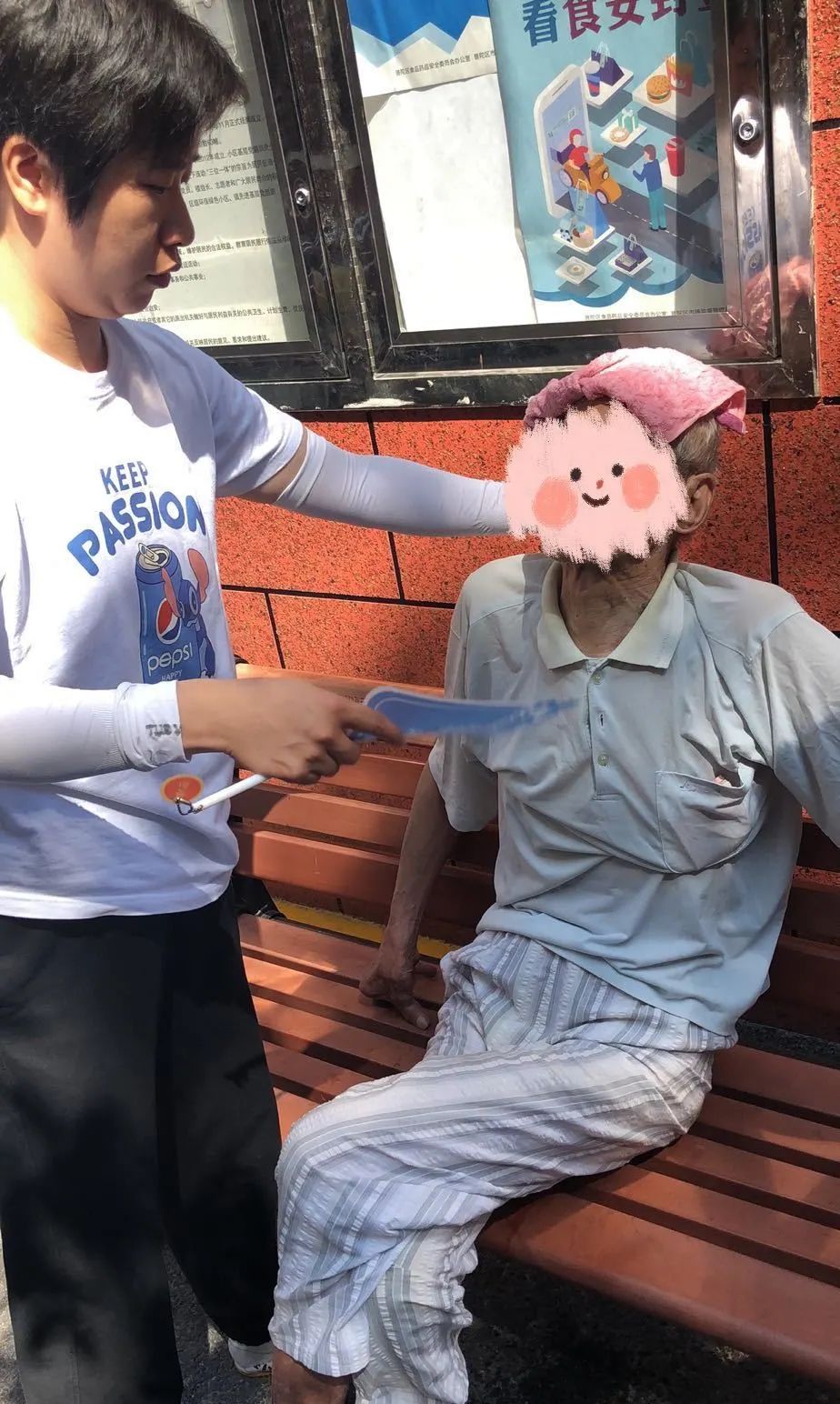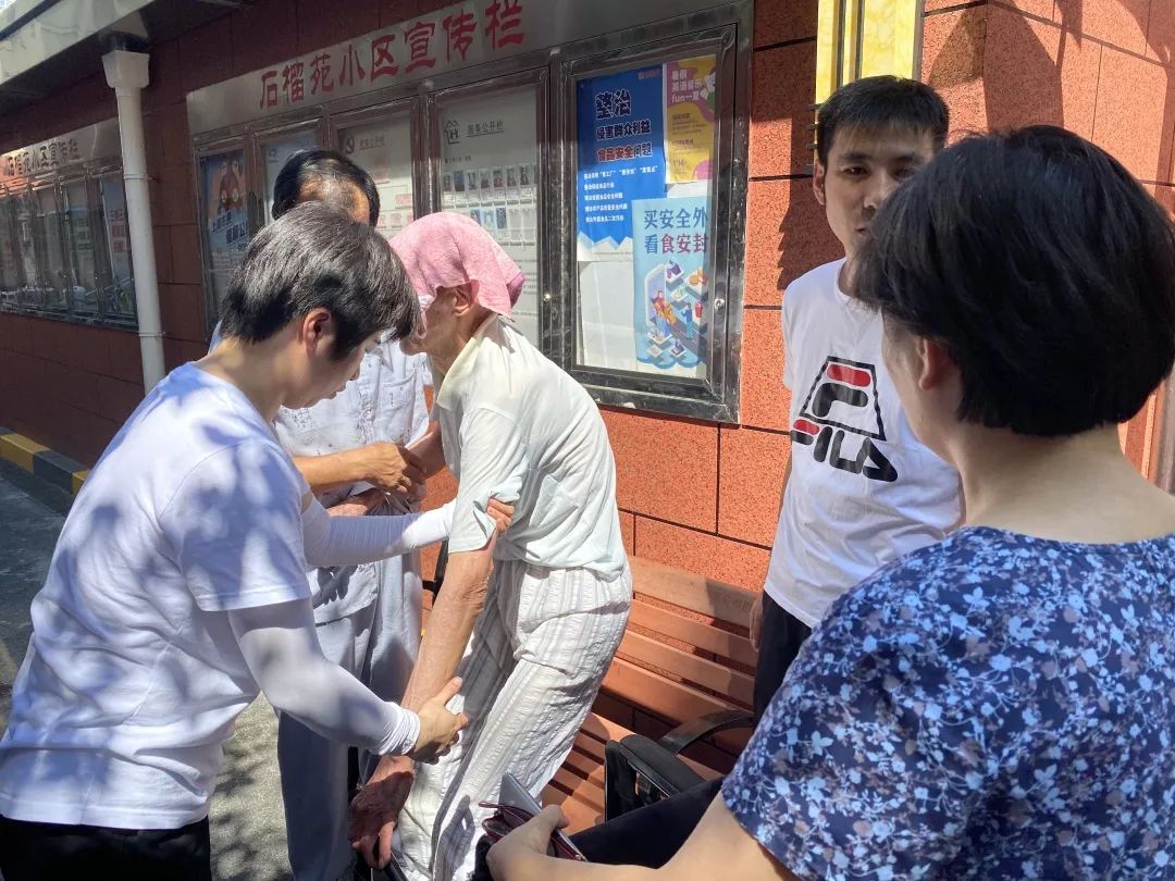 山茶苑87岁高龄的孙庆涛老人曾患脑梗,血压长年偏高,近日在烈日下行走时意外摔倒。居委会书记知晓后第一时间赶到,送水、扇风,安抚老人的情绪。并及时与其子联系,一同将老人送回家中,叮嘱其及时服药,减少出行避免中暑。