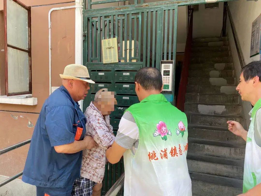 各居村成立关爱独居老人领导小组,对不同标签的老人进行分类管理,建立“桃浦镇关爱独居老人预警网络”,处理突发事件。志愿者一旦发现独居老人有异常或在家发生意外情况,立即向居委会反映,居委会第一时间通知老人的子女,居委会应急处理后上报镇老龄办。8月24日早上9点45分左右,有一位居民晕倒在石榴苑小区门口,周围的居民看见后赶紧帮忙搀扶至椅子坐下,居委会工作人员得知后,立即拿好扇子、水、毛巾、青草膏等消暑物品赶到现场,帮助老人缓和情绪。经了解,此老人高龄93岁,家住和乐苑小区,早上单独出门遛弯,由于天气炎热,有轻微中暑症状。了解这一情况后,石榴苑居委会工作人员立即联系和乐苑居委会,告知其家属情况。最后,由家属与和乐苑居委工作人员一起护送回家。