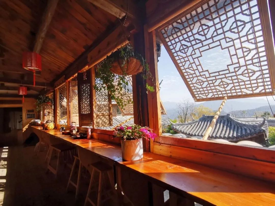 梁架、斗拱、窗扇、栏杆,坐落在青山绿水间的黛瓦粉墙,古朴木雕不饰油漆,自身散发迷人的盎然古意。竹篾晕黄,水墨悬挂,红木老匮。闲庭信步间,勾起无数儿时的回忆。客栈名为“云海”自然有它的道理。清晨云雾缭绕,就像居于云蒸雾绕的仙境,肋下生翼,也梦幻般漂浮于云端。