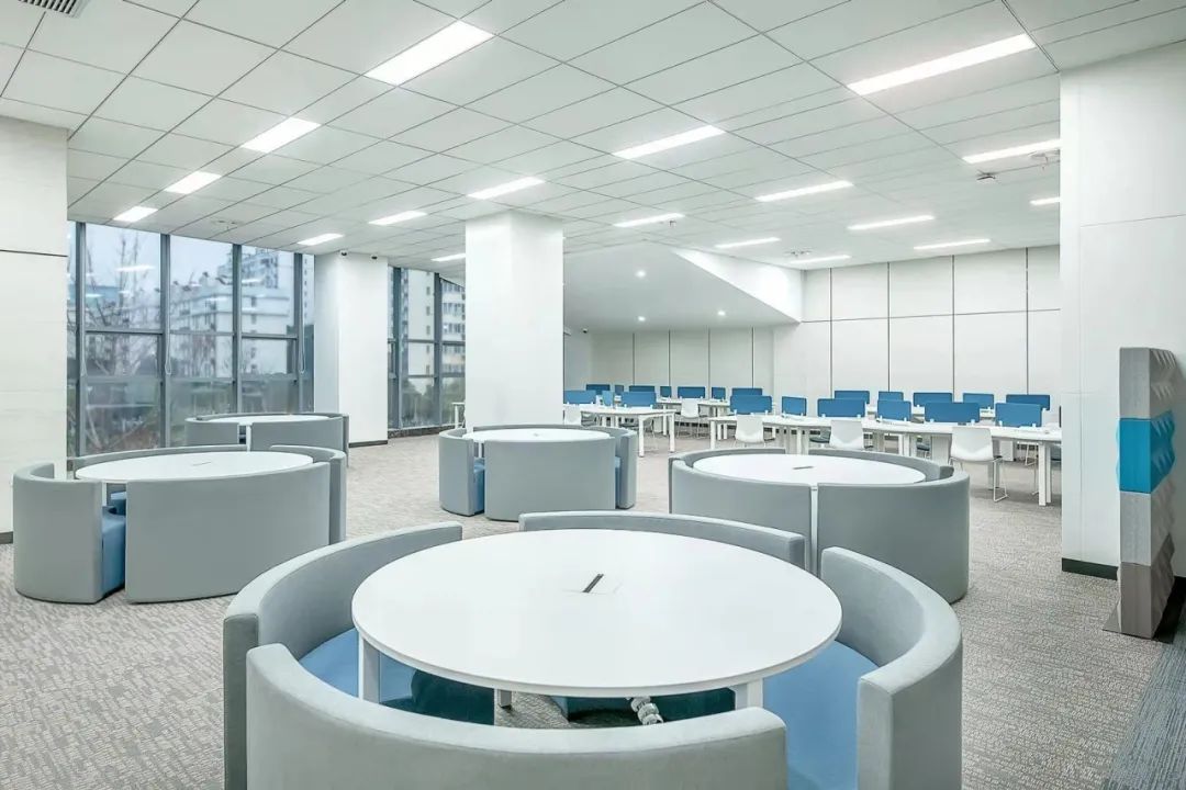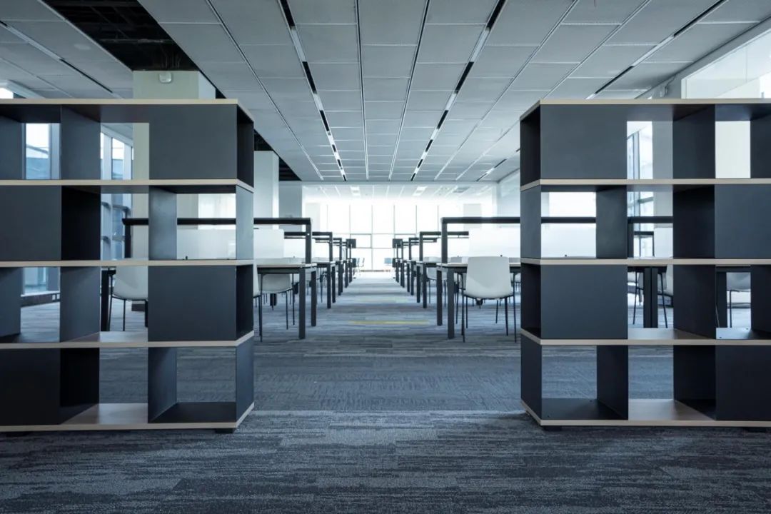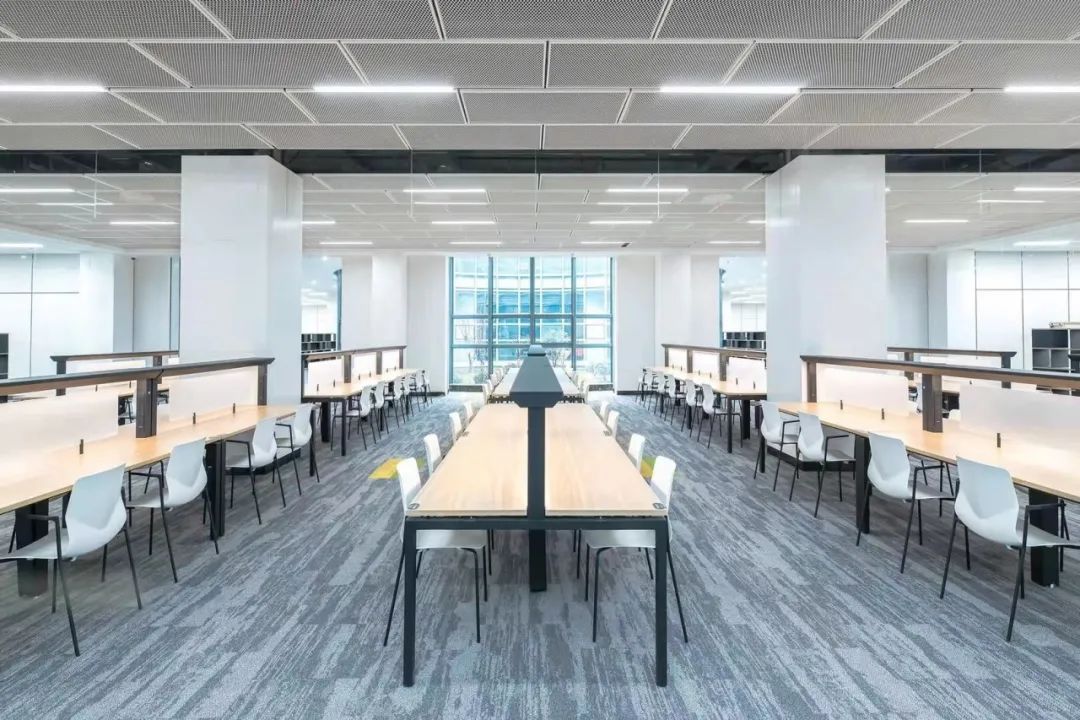 整个图书馆的地面是由OA地板架空铺成,在架空层里铺满了各种走线,如此繁杂的工程就是为了实现电源、USB接口、网口等各类强电弱电全部上桌。想象一下,有1200余的阅读席,就需要有将近1200余出线口,而覆盖了整个图书馆的OA地板、地毯以及地下架空层蛛网密布的线路铺设,更是需要耗费大量的人力、物力成本。所有这些投入就是尽可能地为大家提供优越的环境,大到布局小到细节,全力打造一个便利无处不在的现代数字化图书馆氛围。