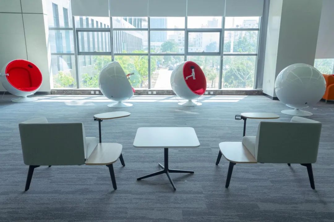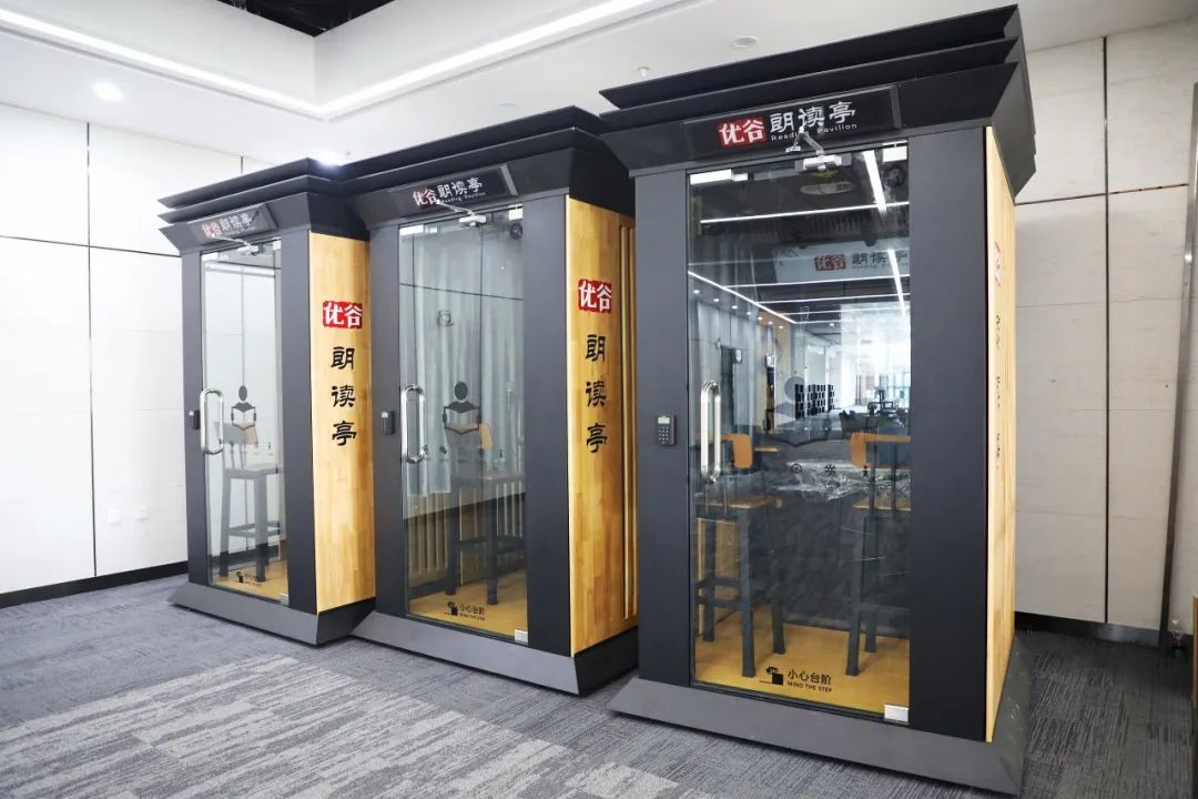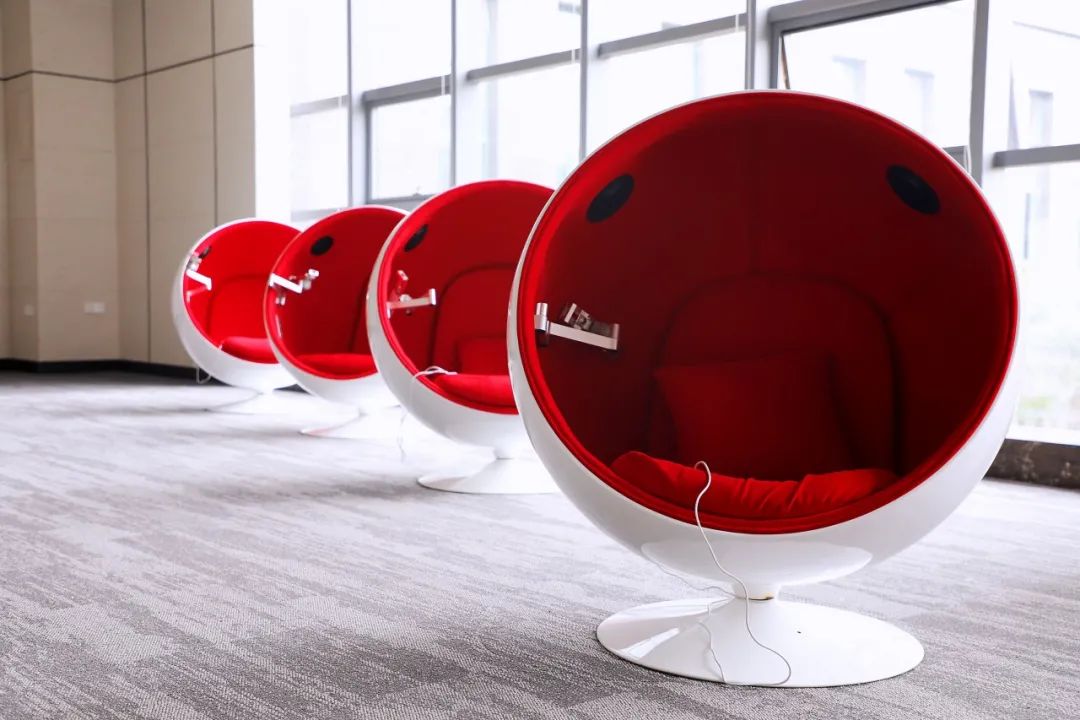 同样是在东北角的位置,还摆放着4台充满未来感的“视听太空舱”。在这里同学们可以“遨游”在“太空舱”中看视频、听音乐,享受自己私密的个人空间。偷偷告诉大家,“太空舱”里具有一定的隔音效果,困了的时候还可以在里面打个盹儿哦~