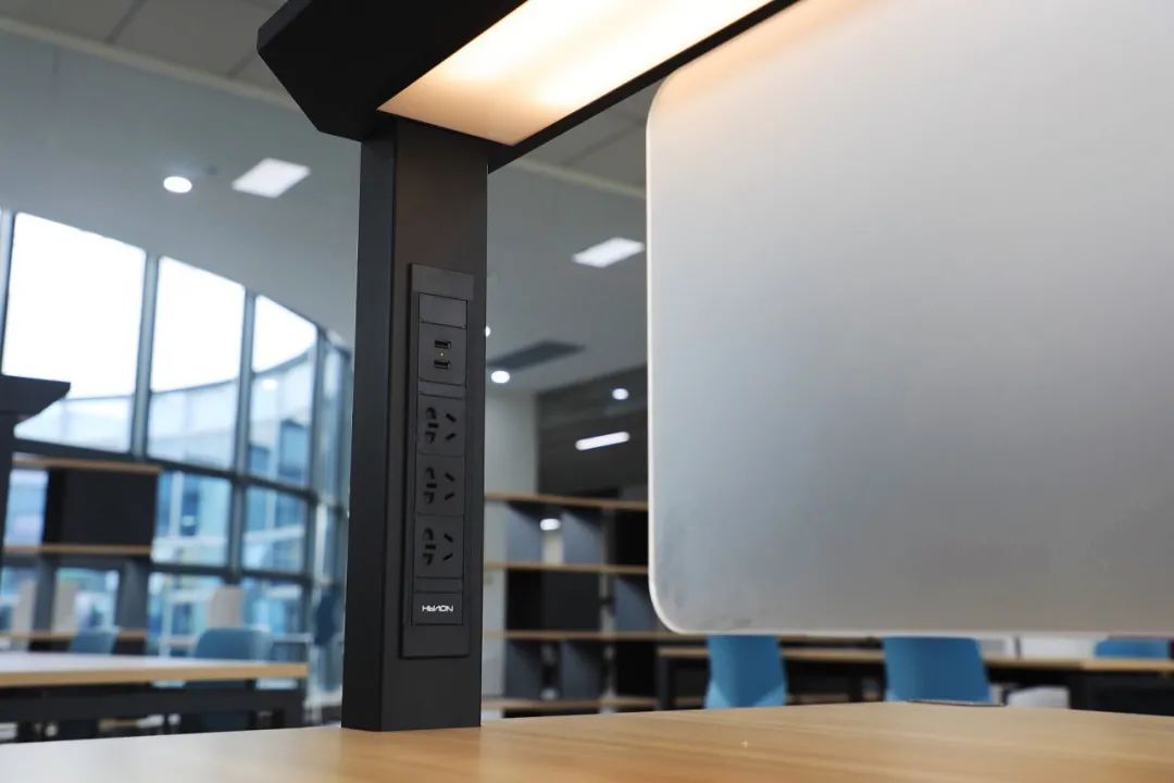 不得不说咱们南湖校区图书馆真是个宝藏图书馆,前面给大家介绍了整个开放阅览空间的布局及摆设,但其实有个小细节它凝聚了非常大的心血,那就是在我们图书馆的所有阅览桌以及部分休憩沙发上都有随手可用的电源插板和USB接口,同时每张阅览桌上还嵌入了一体式的阅读灯,这些看似简单的小细节,背后的工程可不简单。