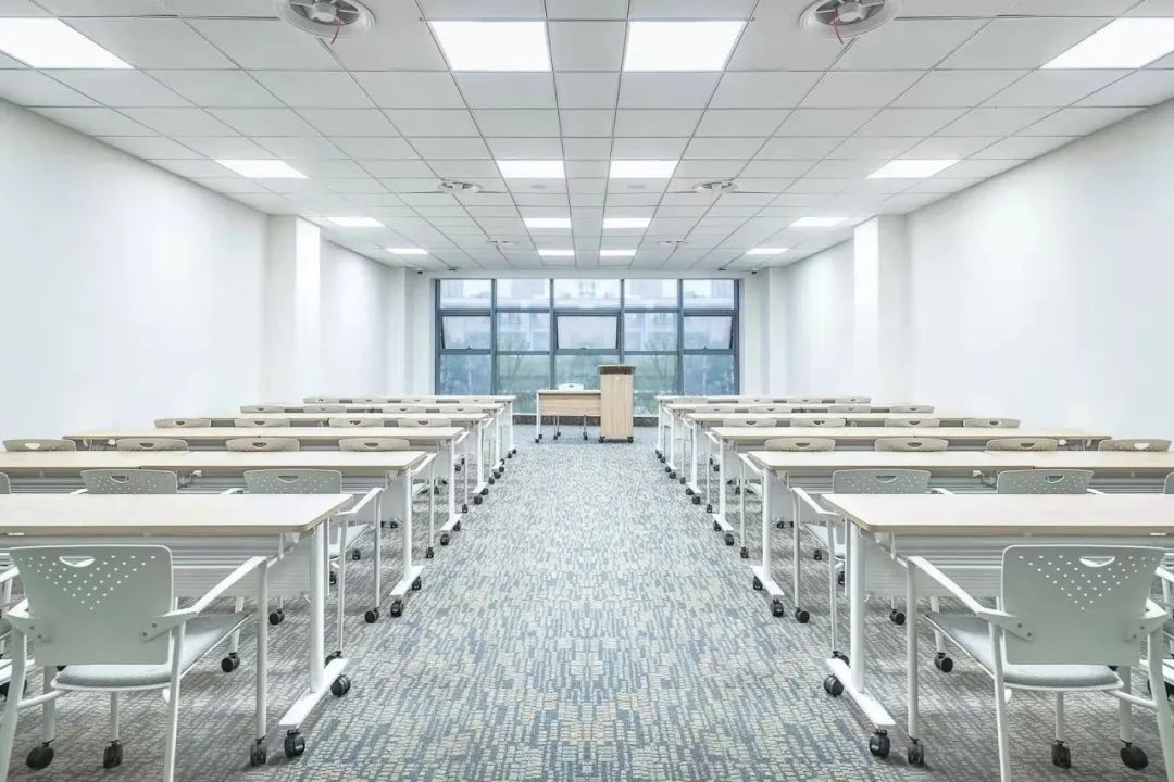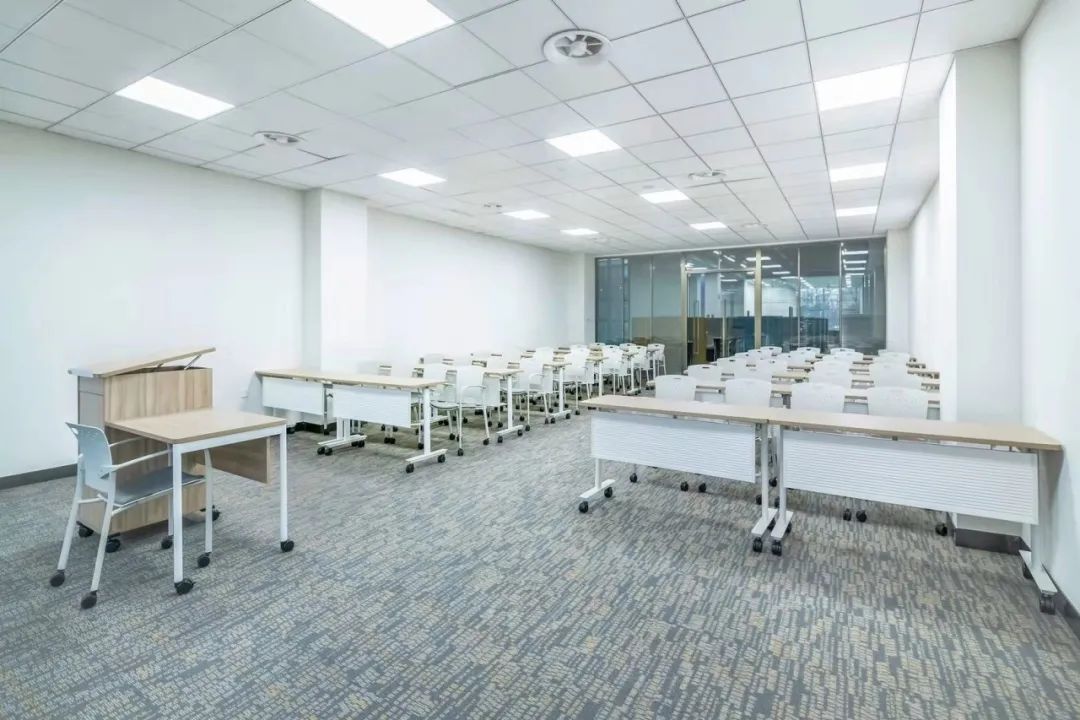 图书馆二楼的西南角还配备了一间培训室,最多可容纳56人,便于在图书馆内组织举行讲座或上课培训。