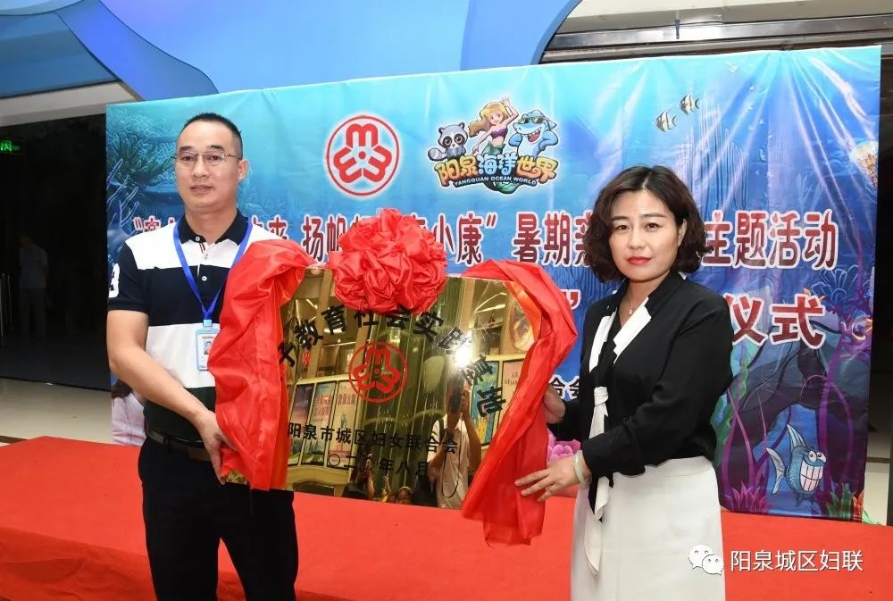 社会实践活动是亲子教育的必要课程,为丰富亲子生活方式,拓展亲子学习空间,提升亲子海洋知识,城区妇联于8月21日下午在阳泉海洋世界开展阳泉市城区“童心童梦创未来,扬帆起航奔小康”暑期亲子系列主题活动——“亲子教育社会实践基地”授牌仪式。区妇联主席葛蕊、阳泉海洋世界总经理覃杰、新天地商业广场总经理林吉祥出席活动并讲话。