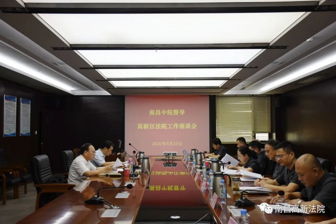 (座谈会)8月25日上午,南昌市中级人民法院党组书记、院长吕清泉一行到高新技术产业开发区人民法院开展督导调研工作,并召开座谈会,该院全体班子成员参加会议。